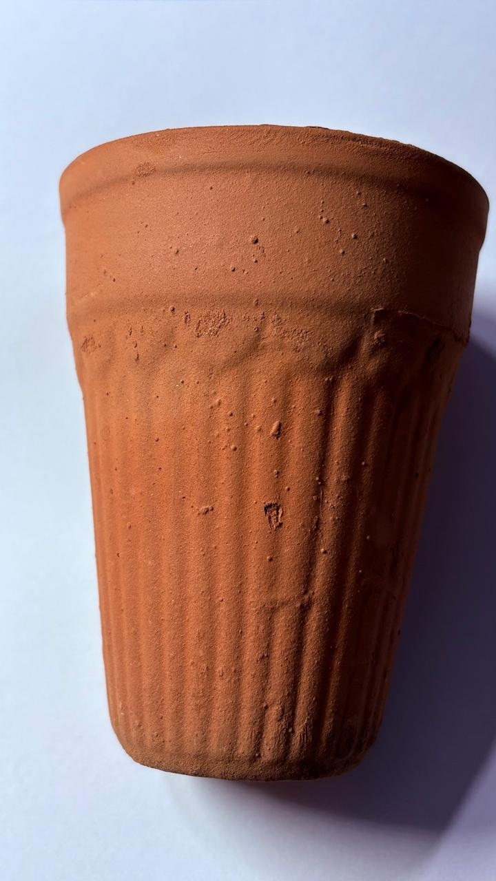 a traditional, handleless, disposable pottery cup from India, handcrafted from clay, known for its earthy aroma and flavor it imparts to hot beverages like chai, coffee, or milk